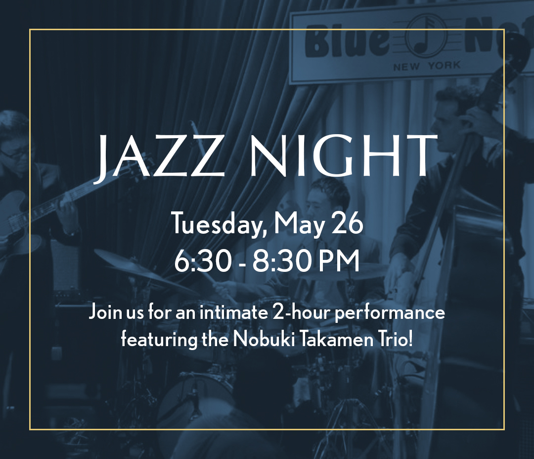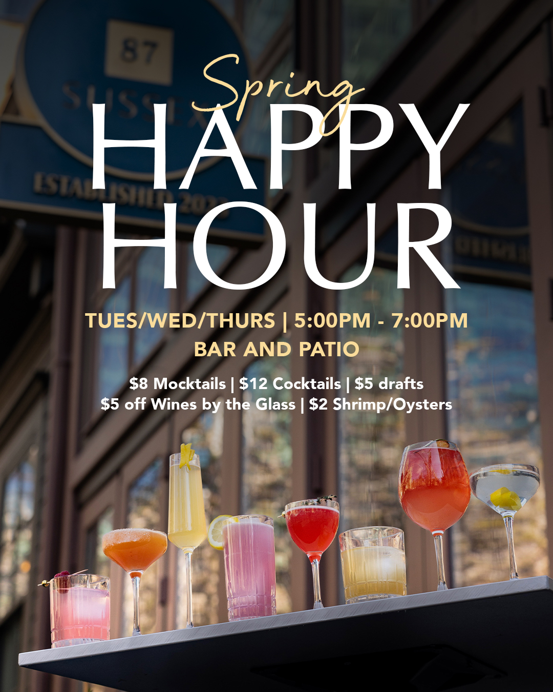 Brunch LaunchSaturdayMay 2nd, 202611:00AM - 2:30PMBook Your Reservation Mother's Day BrunchSundayMay 10th, 202611:00AM - 3:00PMBook Your Reservation Jazz NightTuesdayMay 12th, 20266:30PM-8:30PMBook Your Reservation Spring Cooking ClassWednesdayMay 20th, 20267:00PMBook Your Reservation Jazz NightTuesdayMay 26th, 20266:30PM-8:30PMBook Your Reservation Happy HourTuesday - Thursday5:00PM-7:00PMBook Your Reservation The Midweek EscapeAvailable Wednesday EveningsBook Your Reservation